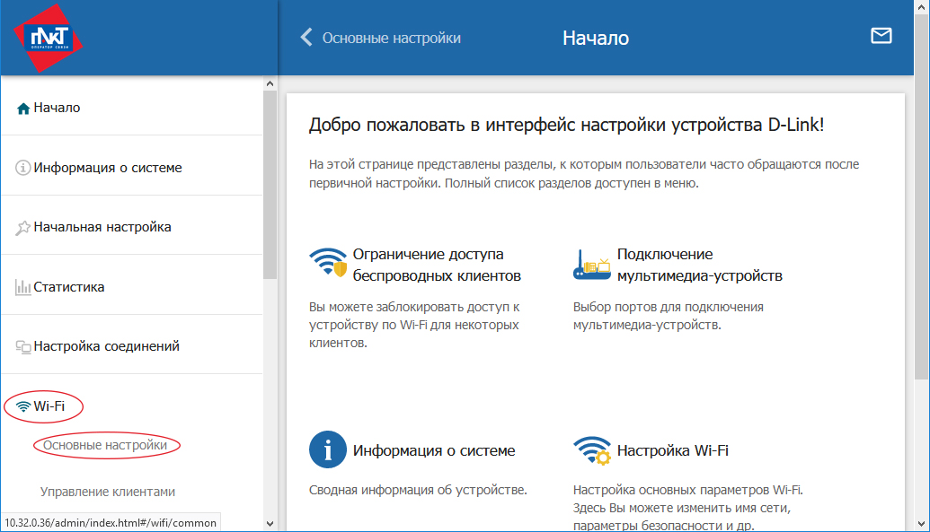 В меню слева выбреите Wi-Fi и далее Основные настройки