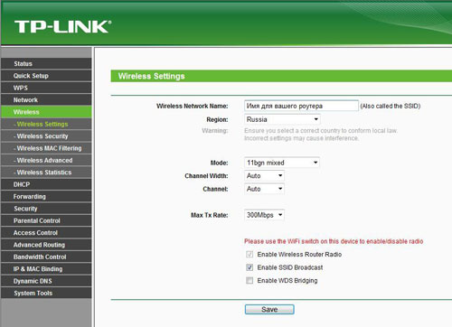 Wireless Network Name – имя вашей сети которое будет отображаться на подключаемых устройствах, Задайте свое значение.
