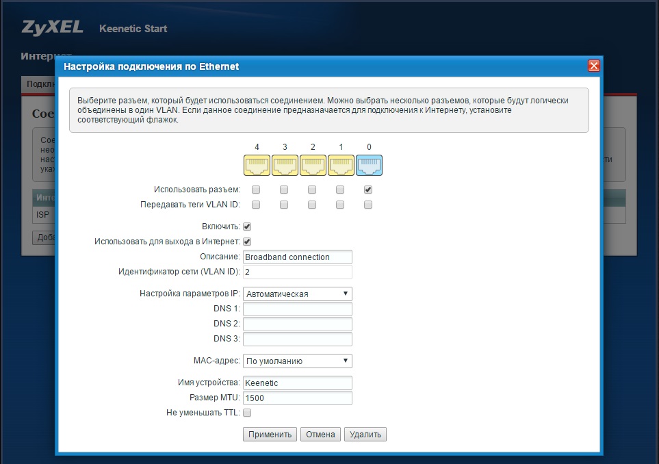 Настройка интернет центра Keenetic для подключения по выделенной линии.