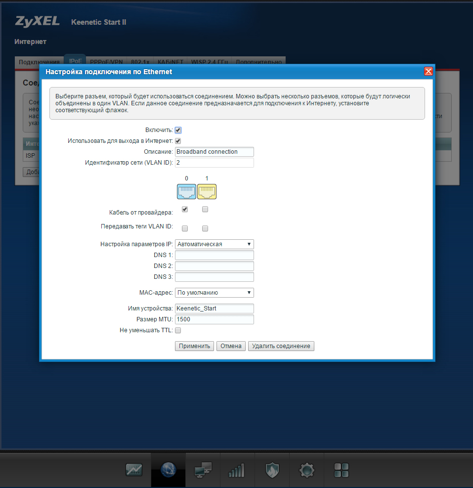 Настройка интернет центра Keenetic Start II для подключения по выделенной линии.