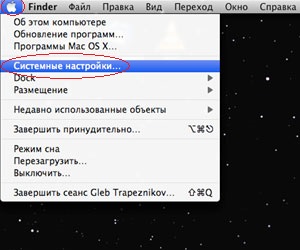 Нажмите на значок «Яблока» (как правило он находится в верхнем левом углу экрана) и в появившемся меню выберите пункт Системные настройки.
