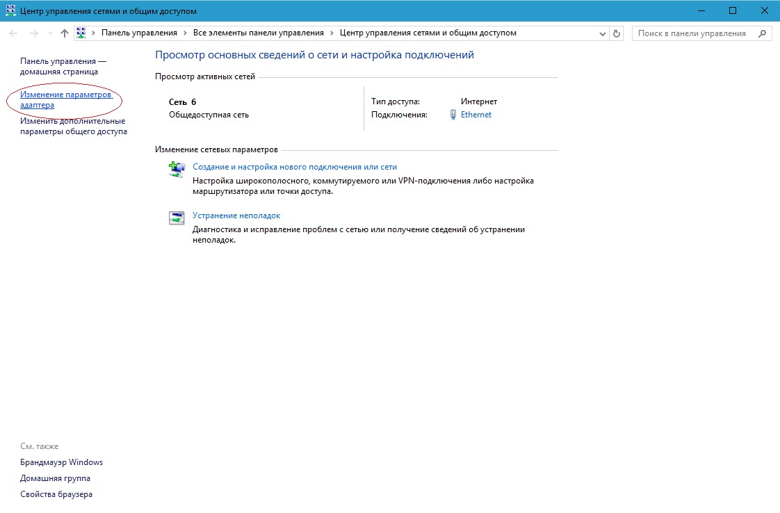Выберите Изменение параметров адаптера.